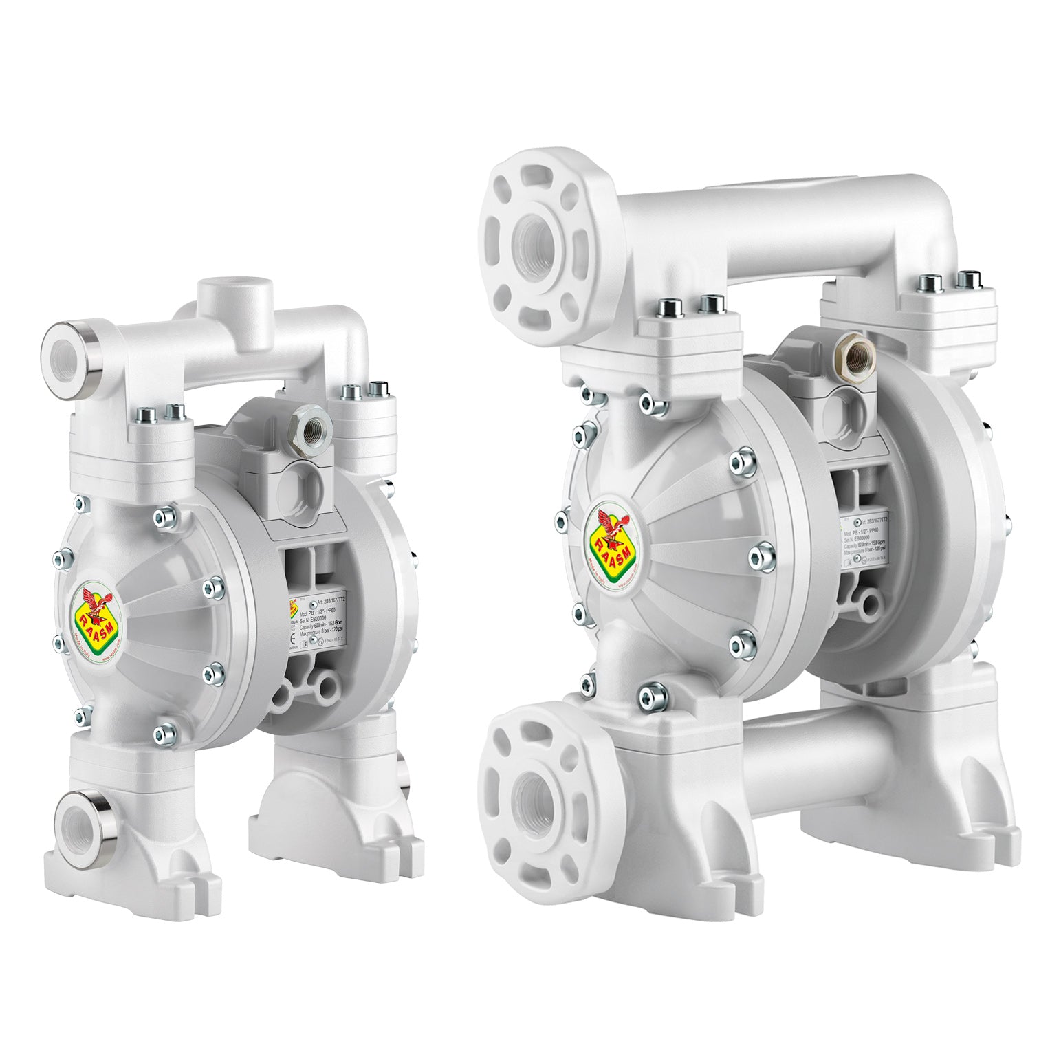 The pneumatic diaphragm pumps are designed with a 1:1 compression ratio and made to pump a vast range of fluids, with high viscosity and with solid parts in suspension. These models are designed entirely in polypropylene to allow the pump to also be used in aggressive working environments with corrosive atmospheres, as well as for use with water-based solutions, detergents and corrosive fluids. The vast range of diaphragms and valves that can be used ensure these products are fully modular and customised.