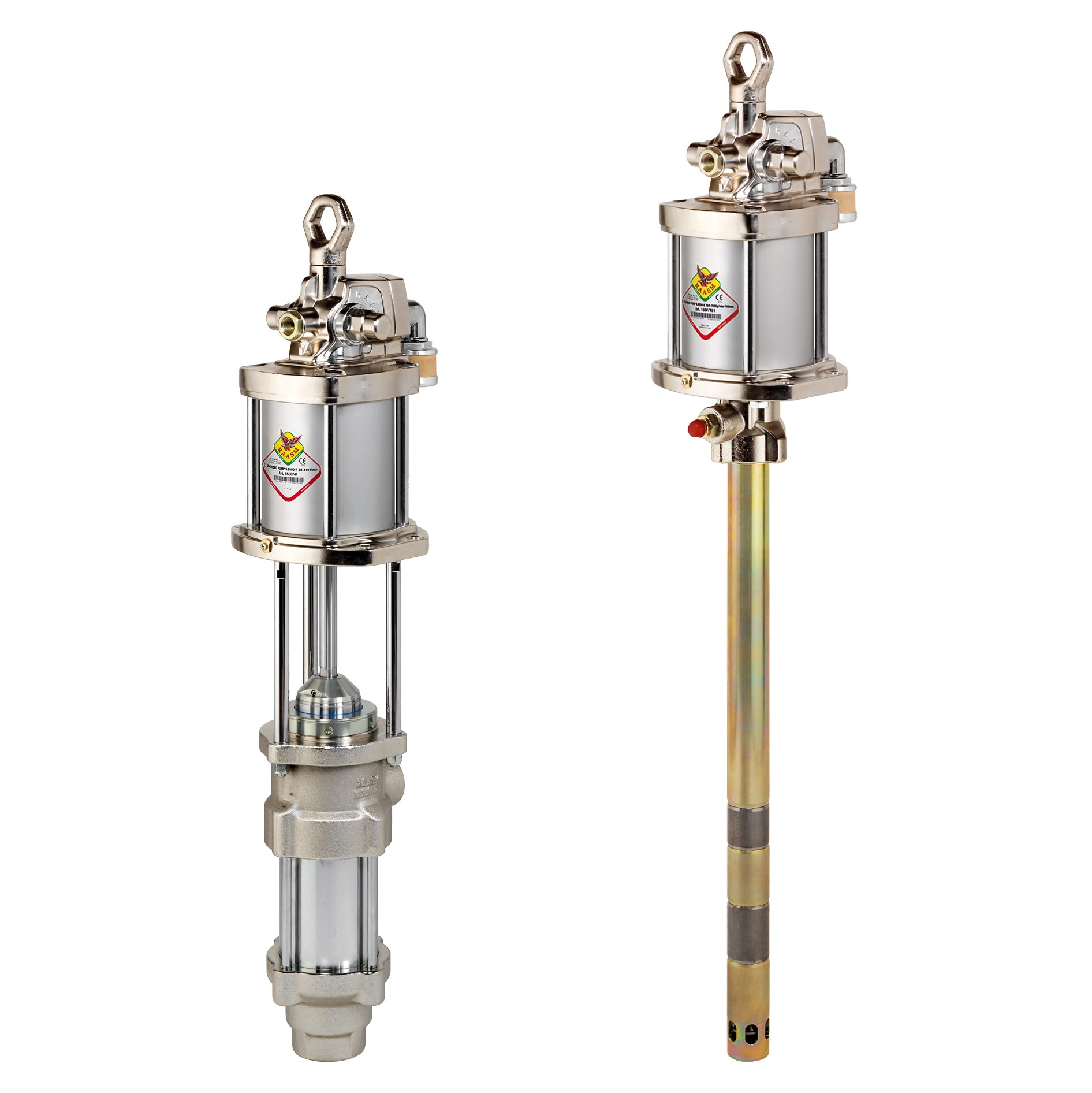 1500 series industrial pneumatic piston pumps, for the medium-long distance distribution of oils, greases and similar, ensure high levels of performance both in terms of range and pressure used. The high standard of quality of the components and the compact structure of the pump guarantee long-lasting and reliable operation even in extreme environments and working conditions. They are available as a disconnected version, with the motor physically detached from the pick-up tube and so protected against any leakage or breakage, and as a flanged version, for use on drums, cisterns or ram hoists.